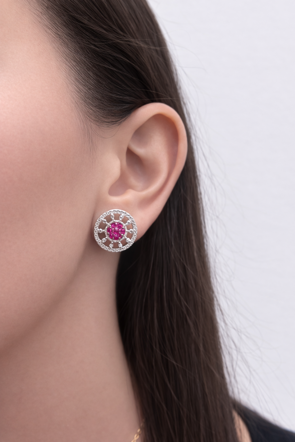 Gli Orecchini Cassiopea Rosa sono realizzati in argento 925 rodiato e impreziositi da zirconia cubica bianca e rosa, che cattura la luce con delicatezza.
